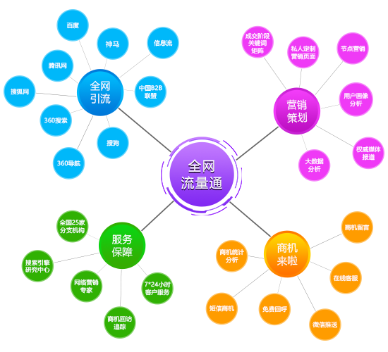 全網(wǎng)流量通是信聯(lián)搜索引擎研究中心專家運(yùn)營團(tuán)隊通過大數(shù)據(jù)分析,針對購買階段訪客的搜索習(xí)慣,為企業(yè)量身定制全網(wǎng)引流推廣方案。提供精準(zhǔn)高轉(zhuǎn)化關(guān)鍵詞定向投放,定制智能營銷型落地頁,提高轉(zhuǎn)化率,把商機(jī)直接推送到手機(jī)上。全網(wǎng)流量通是競價包年的深度升級版,實現(xiàn)效果可視化。